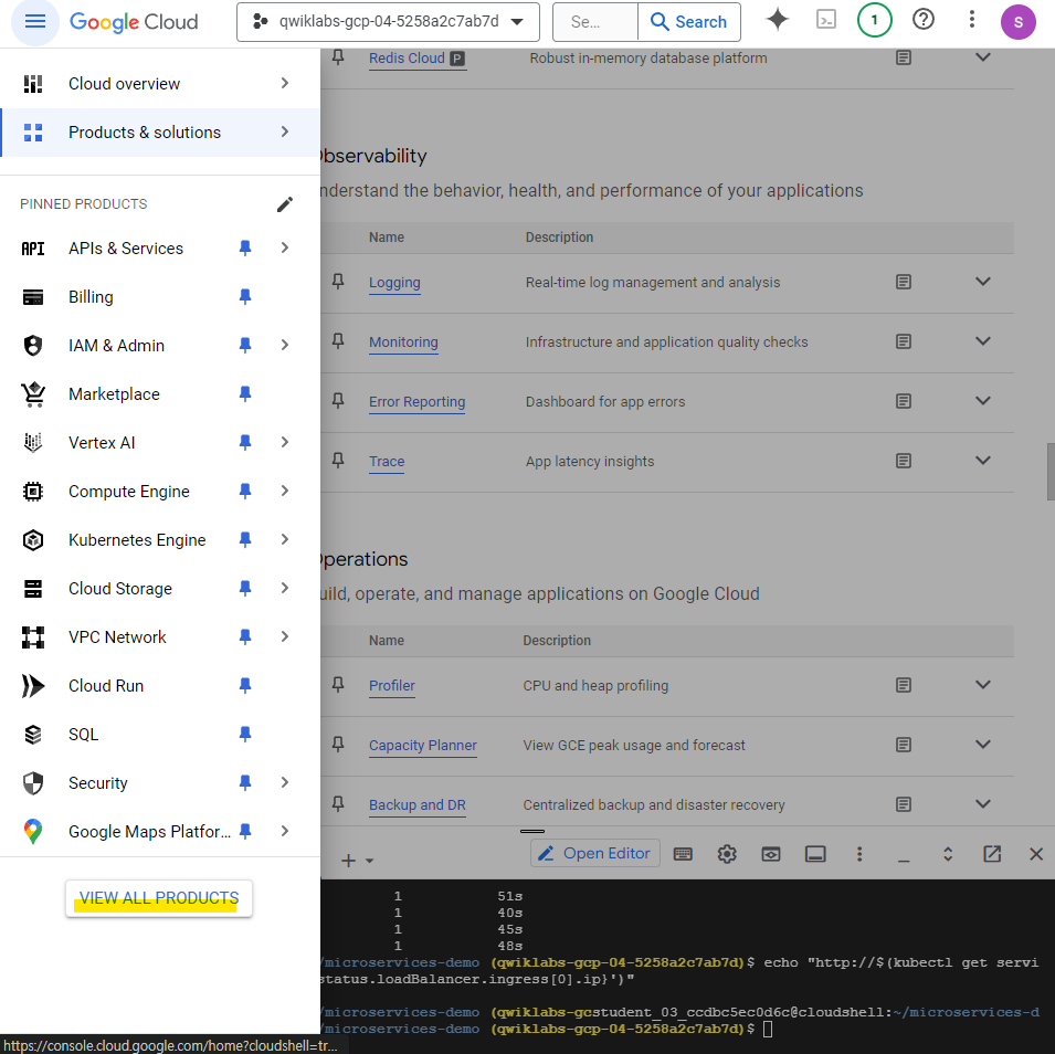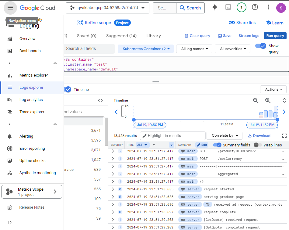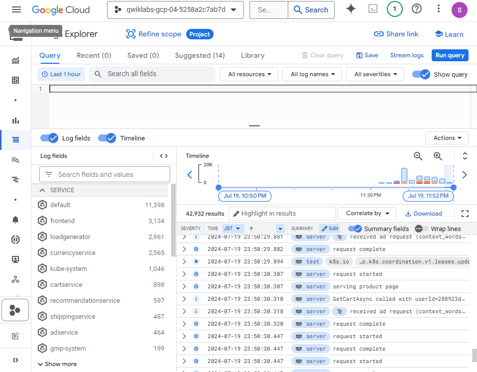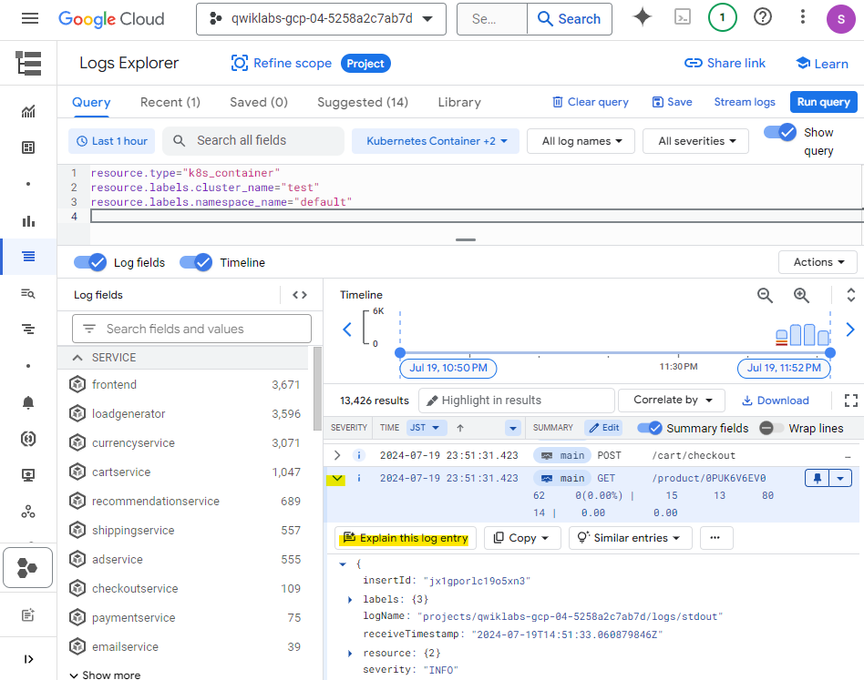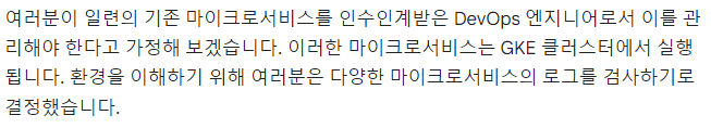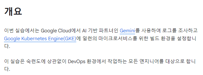 이번엔 GKE 클러스터를 만들고 마이크로 서비스 배포, Gemini에게 물어서 로그 확인하는 쿼리 작성하는 법과 환경 만드는 법만 익혔다.