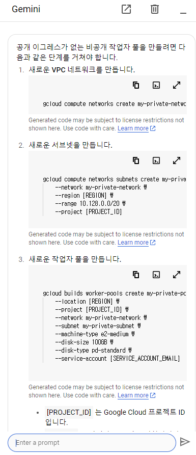 Gemini를 사용해 비공개 빌드 환경을 만들고 실행하는 방법을 파악하기