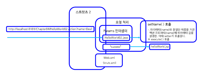 // HelloWorld02 액션에서도 HelloWorld 액션에서와 마찬가지로