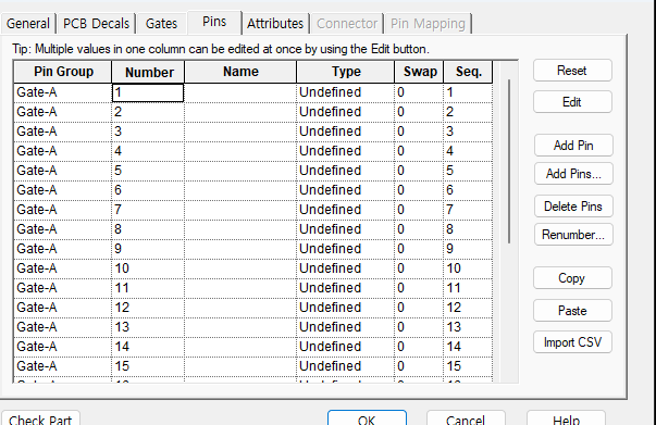 #은 핀을 생성한 순서이며, 우측 핀은 마우스 우측버튼 Move 명령에서 X축 반전을 시키면 된다.