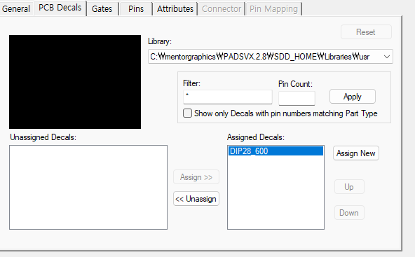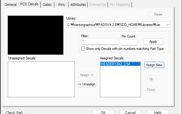 PCB Decals tap 에서는 Assign New를 눌러 PCB Decal을 설정해준다.