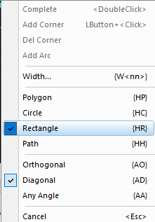 우측키를 통해, 사각형, 원, Polygon을 만들 수 있다.