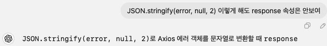 error만 로그 찍어보면 response 속성은 없었는데 왜 error.response를 찍으면 더 자세한 정보가 나오지...!