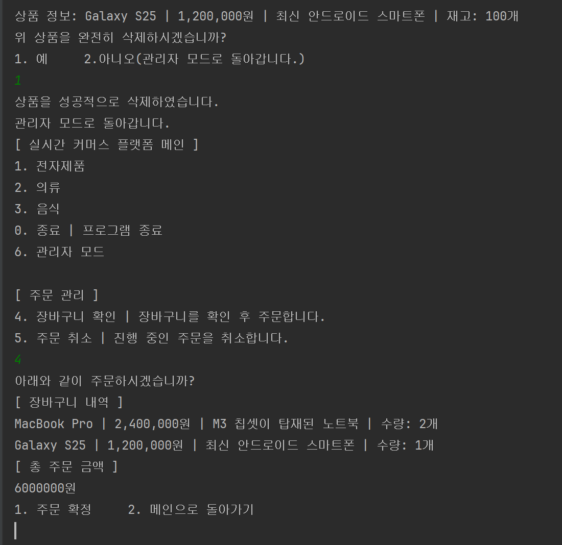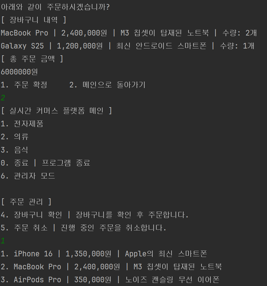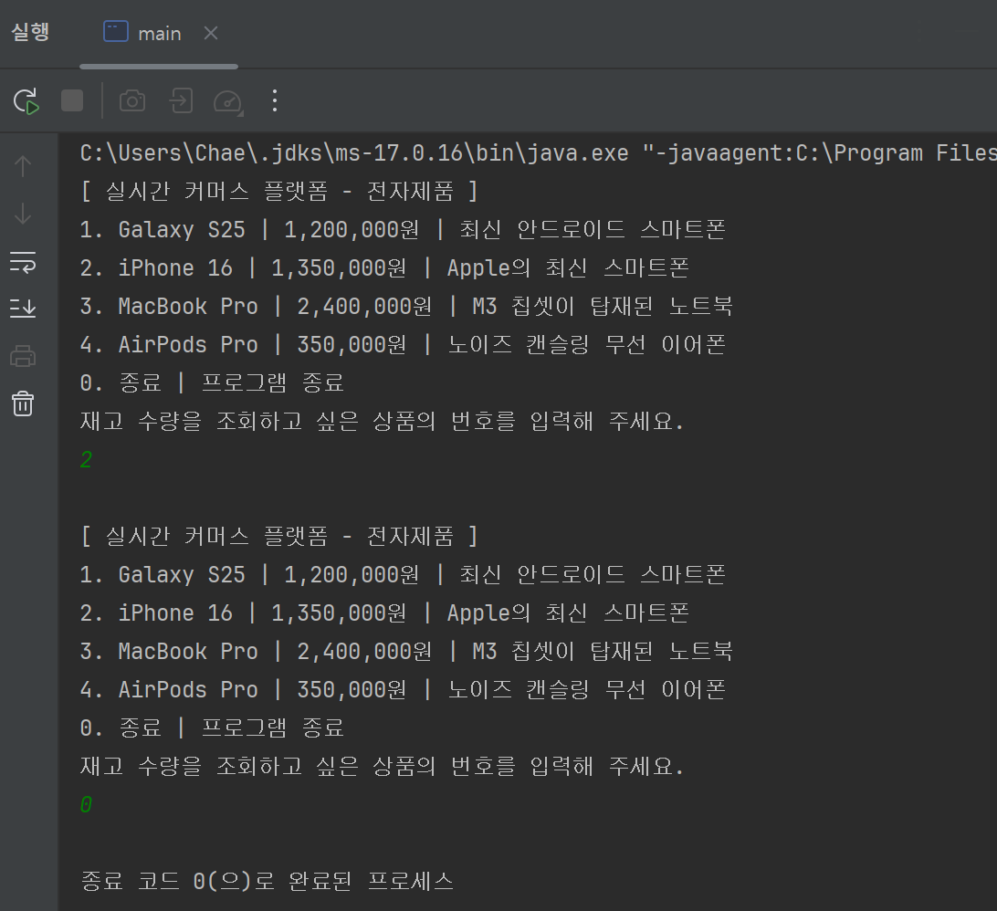 System.out.println("[ 실시간 커머스 플랫폼 - 전자제품 ]");