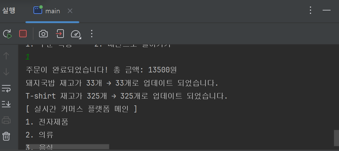 돼지국밥 재고가 34개 → 33개로 업데이트 되었습니다.