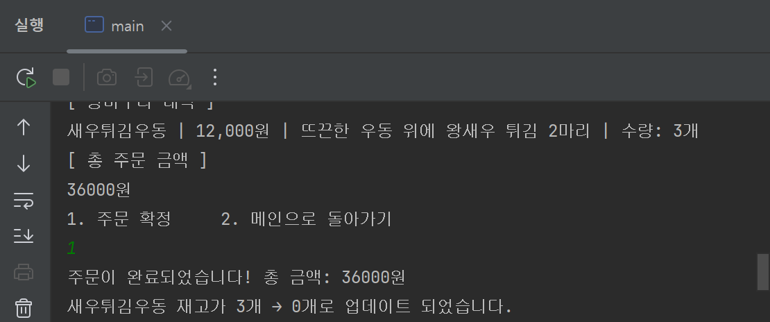 재고수량을 감소시키기 전의 값을 따로 before 변수로 담아주고 출력할 때 확실하게 전/후 값을 구분해서 가져왔다.