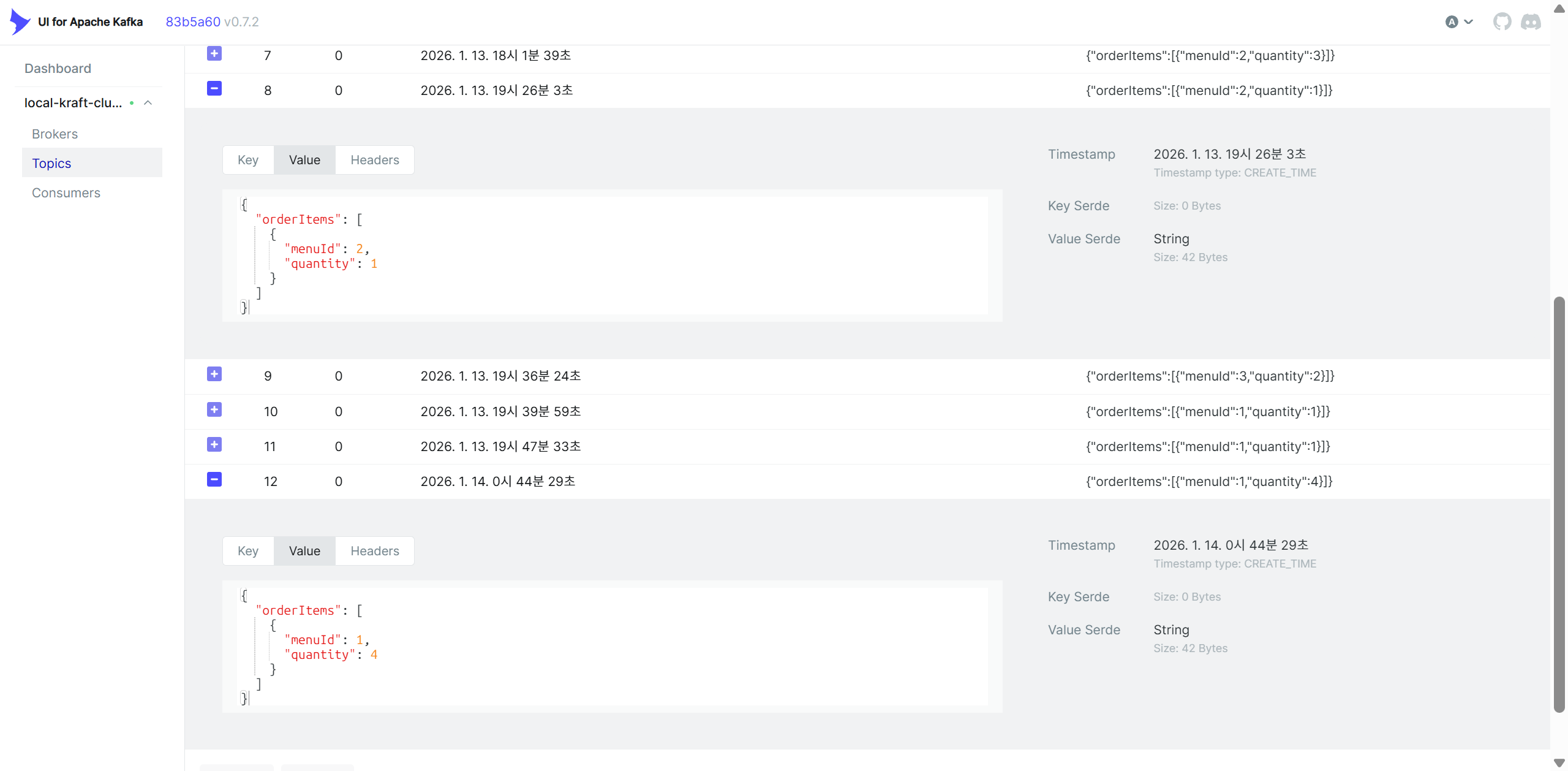 RedisInsight로 Kafka로 보낸 메시지 내용이 잘 저장되는지 확인하려고 했다.