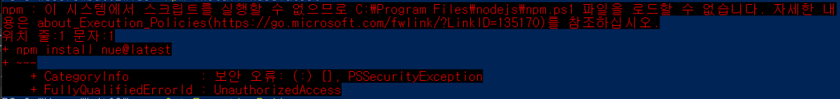 위의 명령어를 입력하게 전에 node.js를 먼저 설치해주어야 한다.
