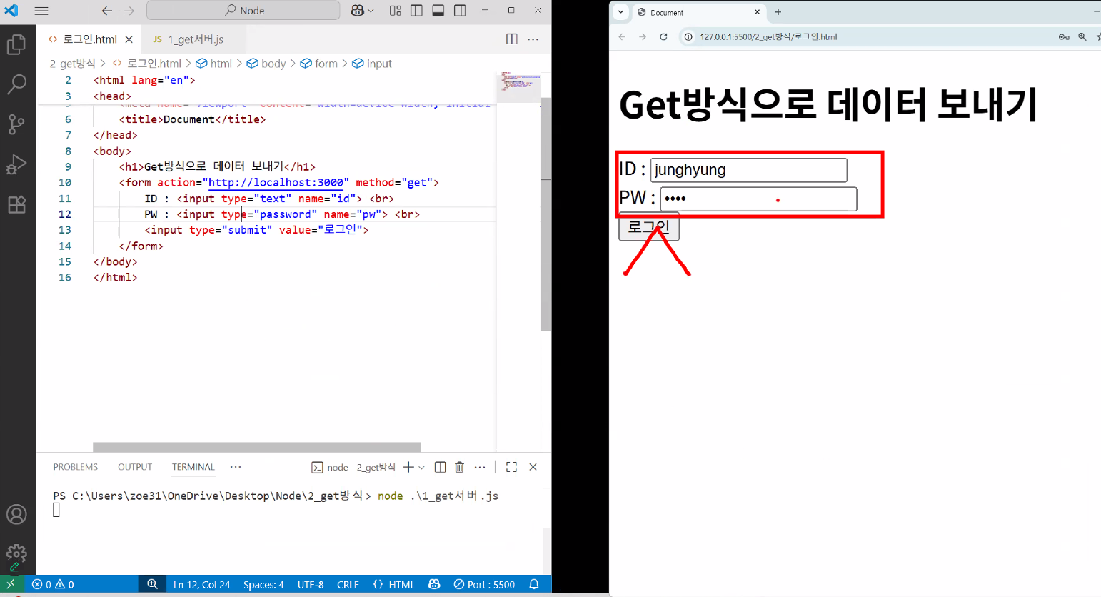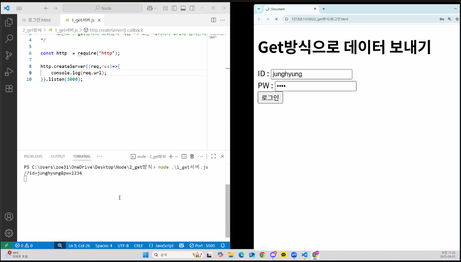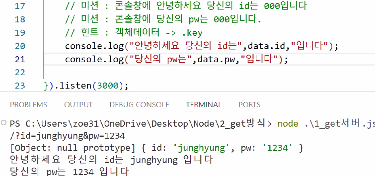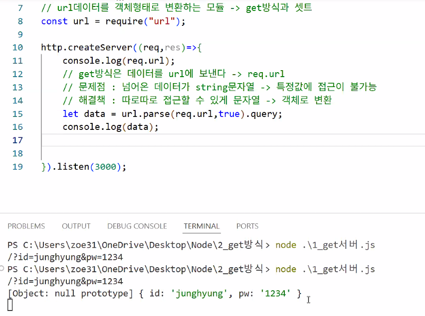 // get 방식은 데이터를 url에 보낸다 → req.url