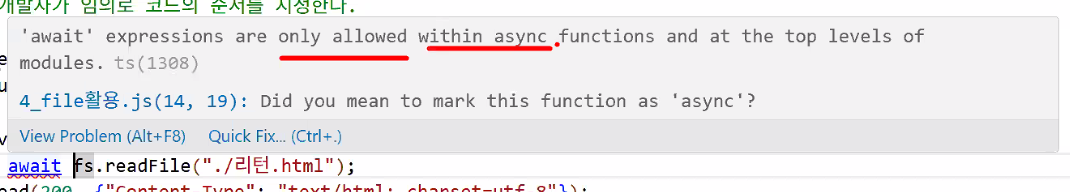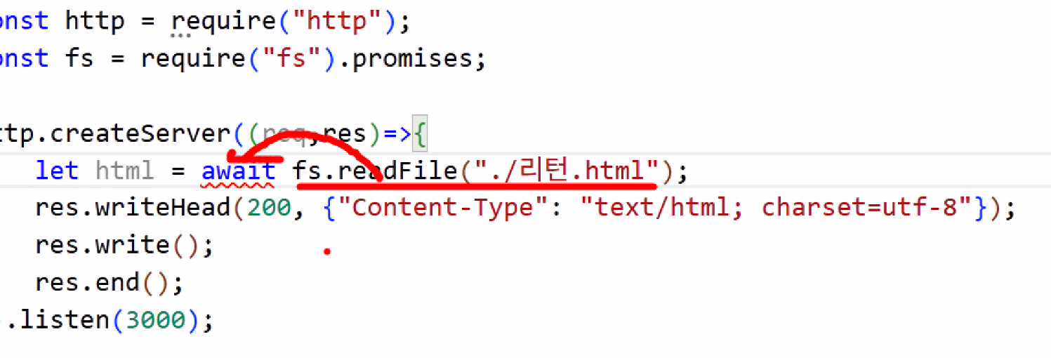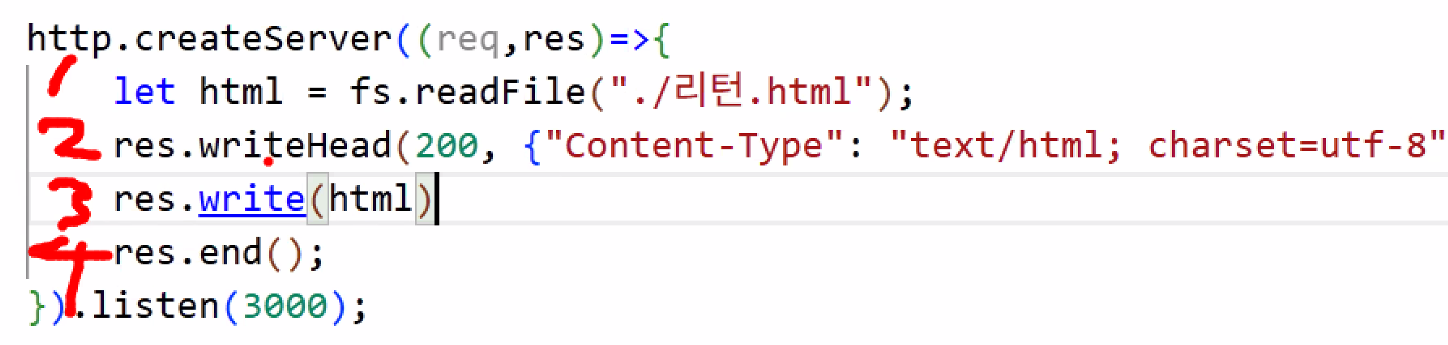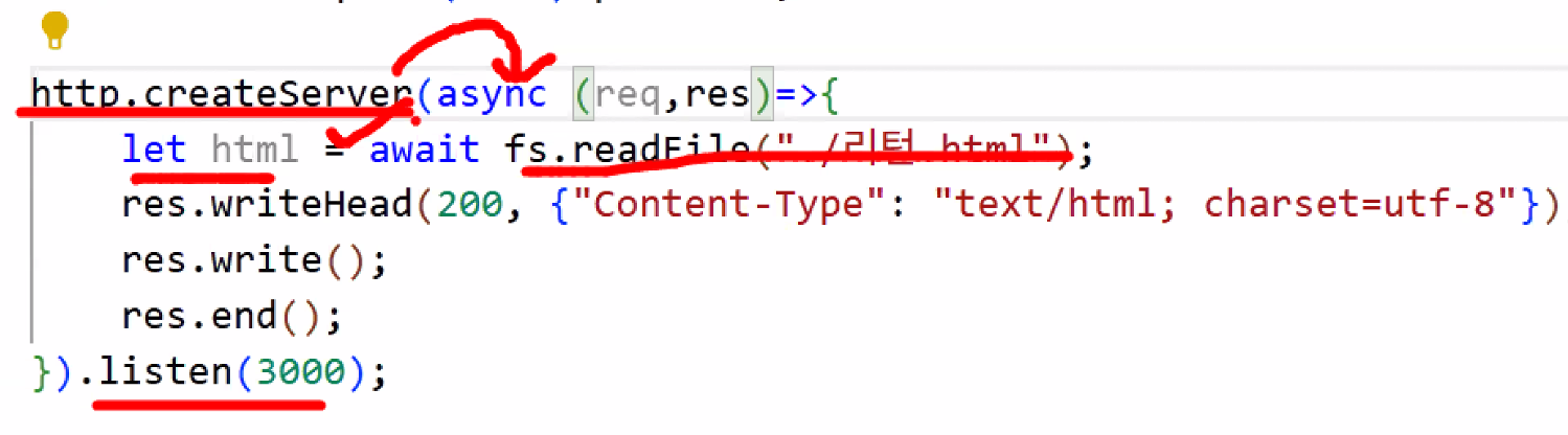 * 모듈: fs모듈(filesystem) → 파일을 넘길 때 활용하는 모듈(내장모듈)