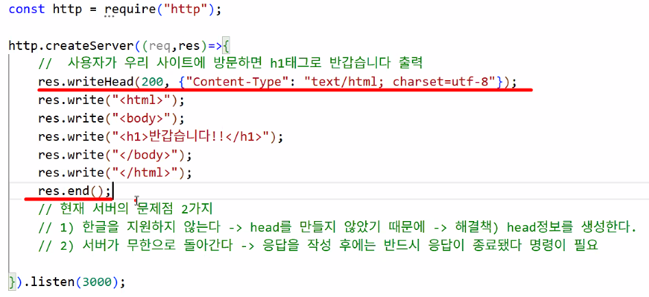 .writeHead();res.writeHead(200,{"Content-Type":"text/html;charset=utf-8"});<!DOCTYPE html><meta charset="UTF-8">.end();