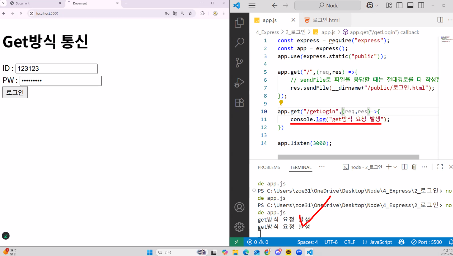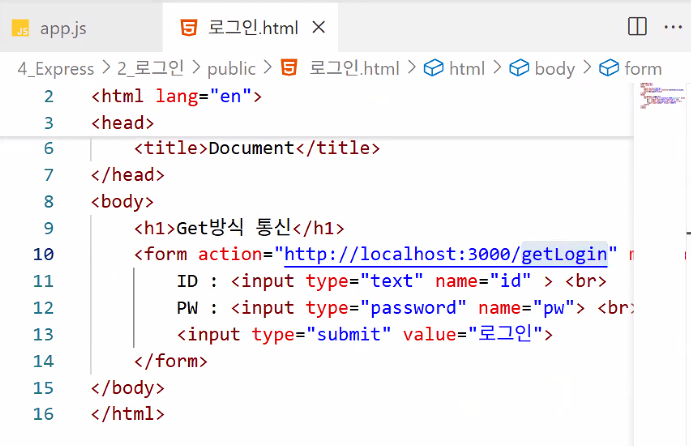 👩💻: 저희 "http://localhost:3000/getLogin" 경로에 데이터 보낼게요~