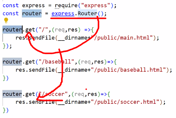 app.use("/",mainRouter);)app.use("/",mainRouter);)이벤트 방식이라 ①, ② 한꺼번에 다 기억하고 있다가 상황에 맞게 이동함