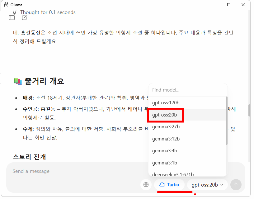 기본 Gemma3:1b 모델 등은 한국어에 최적화되어 있지 않아서,