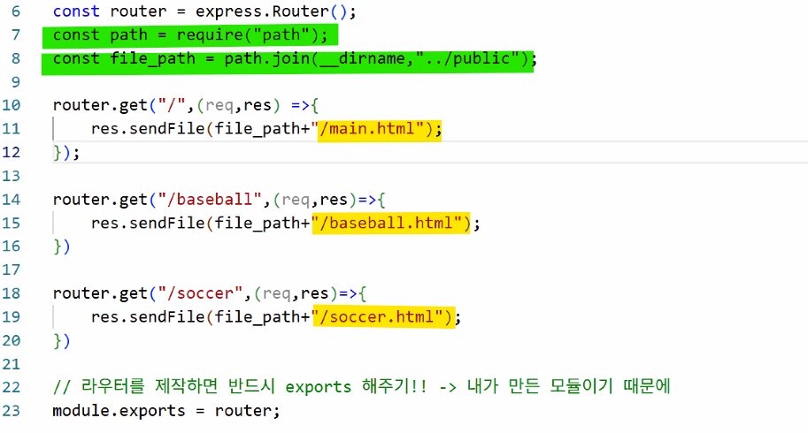 __dirname 키워드__dirname: 현재 작업 중인 파일을 포함하는 폴더까지가 기준app.use(express.static("public"));목적 파일이 상위 폴더에 위치한다면