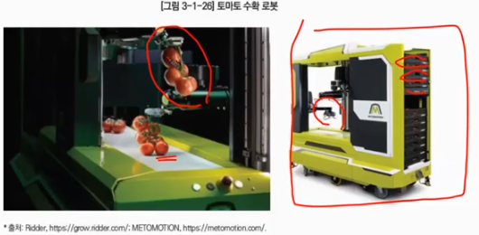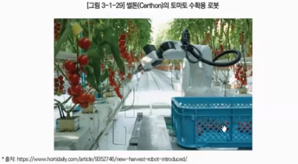 - 빅데이터와 AI는 기후, 토양, 농작물 또는 가축의 상태 등 방대한 양의 데이터를 실시간으로 분석 → 작물 재배 또는 사양 관리의 생산 과정을 최적화하기 위하여 농작업 의사결정에 도움을 줌