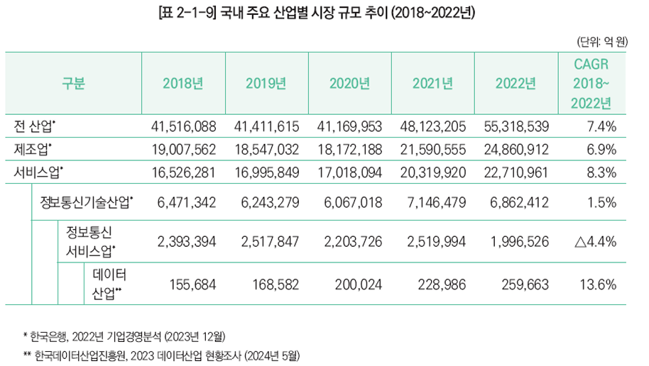 - 데이터 판매 및 제공 서비스업 시장: 13조 3,352억 원