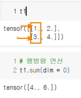 _(Underscore, Underbar, Understrike, Underline)가 붙으면 인플레이스 연산에 해당_가 연산자 뒤에 붙는 메서드를 사용하여 수행할 수 있음: add_, sub_, mul_, div_, pow_, sqrt_, round_, floor_, ceil_, clamp_, fill_t1 = torch.FloatTensor([[1, 2],
