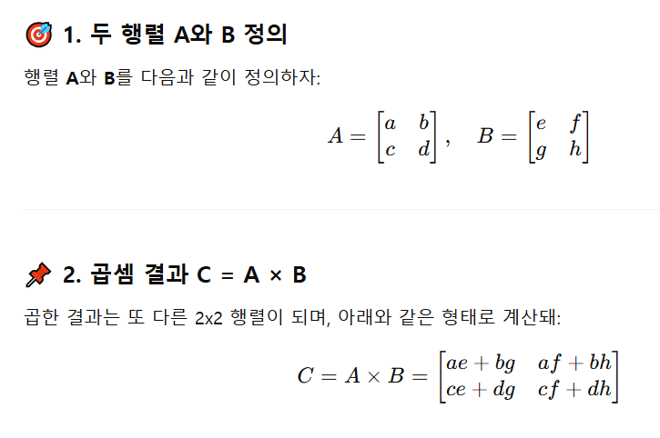 # t1 1행 * t2 1열 -> (1 × 2) + (2 × 3)= 8
