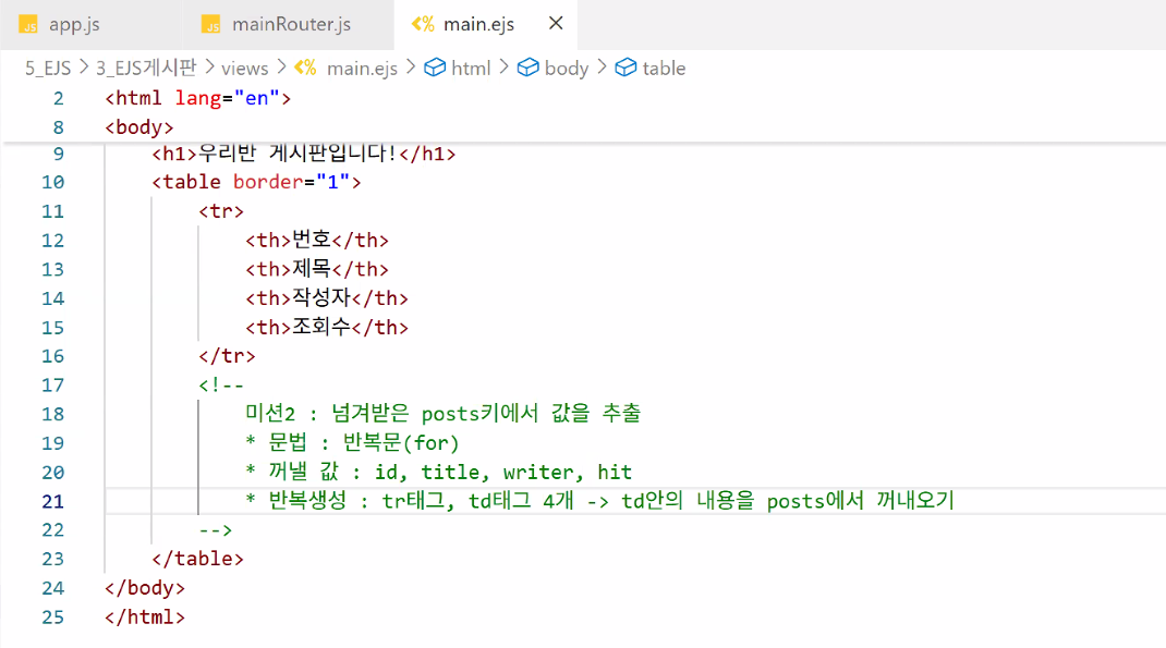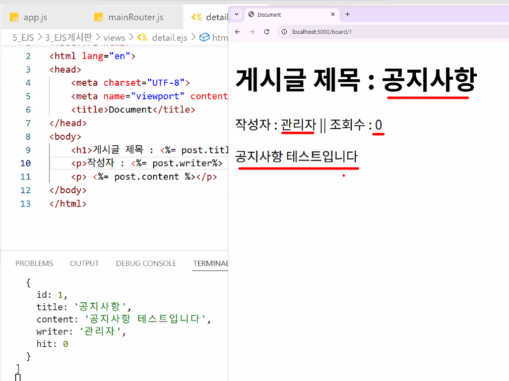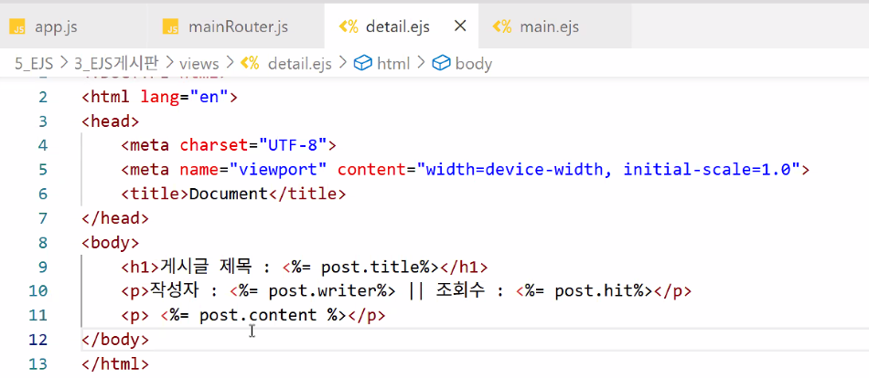- EJS 문법으로 감싸주기