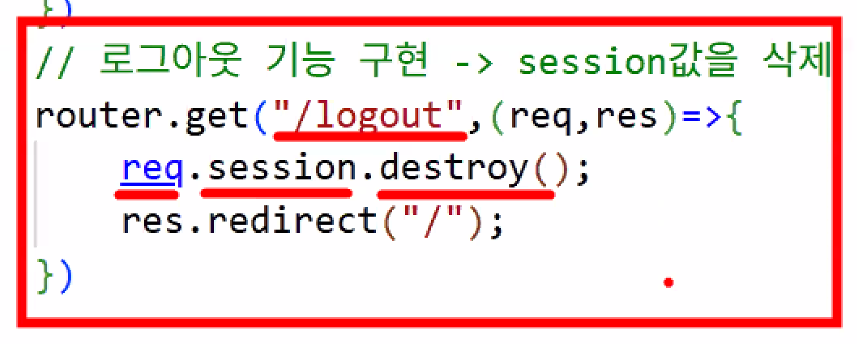 - 현재 기록하고 있던 로그인 정보를 세션에서 지운다는 뜻