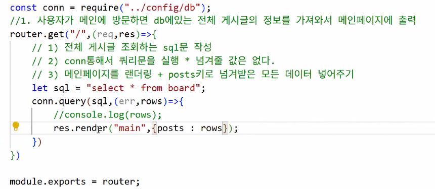 - 메인 페이지를 렌더링 + 넘겨 받은 모든 데이터 posts 키로 넣어주기