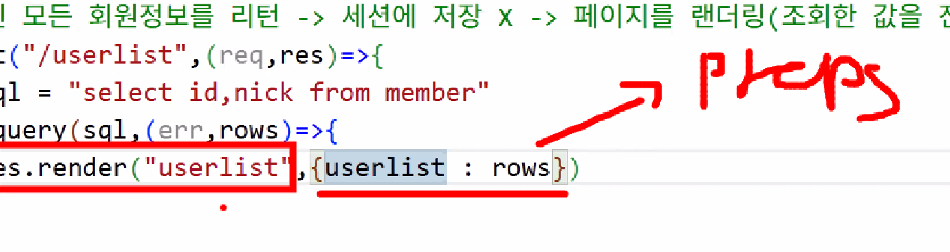 - sql문에 넣어 바로 검색 → 전달 받은 값을 가지고 바로 렌더링: 메인 페이지를 만듦과 동시에 user라는 키에 사용자의 닉네임 값을 저장하는 함수 작성