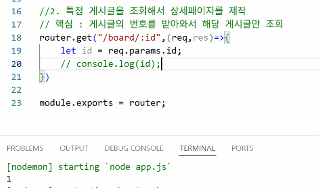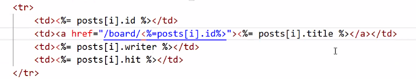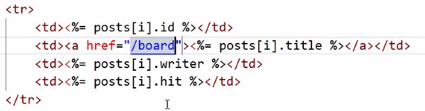 - 이렇게 하면 게시글이 여러 개일 때에도 다 같은 경로로 이동하는 문제가 있음 → 게시글 고유 번호와 연결하기: 파라미터 기법