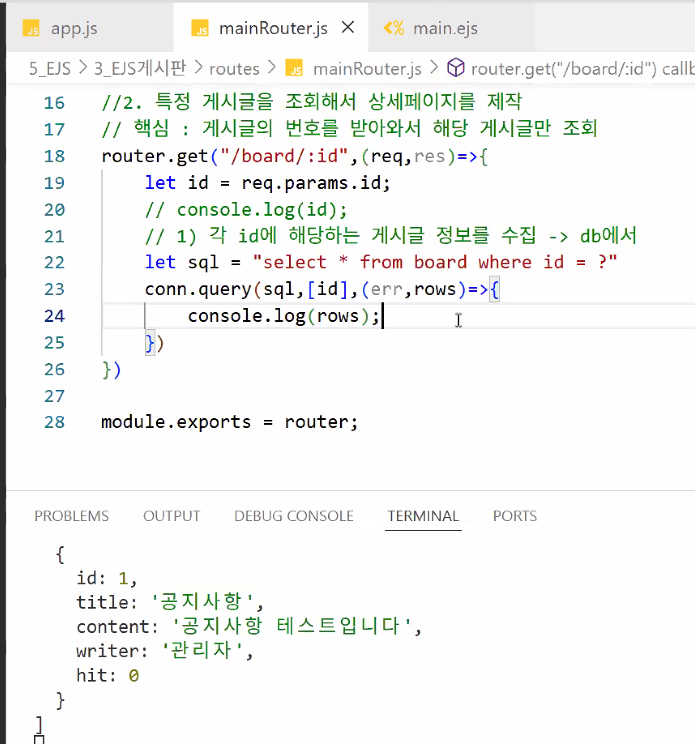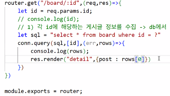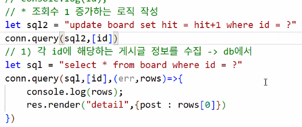 - 넘겨 받은 id에 해당하는 게시글 정보를 DB에서 수집