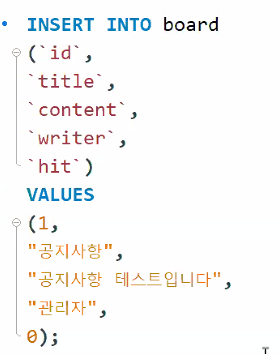 - conn을 통해서 쿼리문을 실행 (※ 넘겨줄 값은 없음)