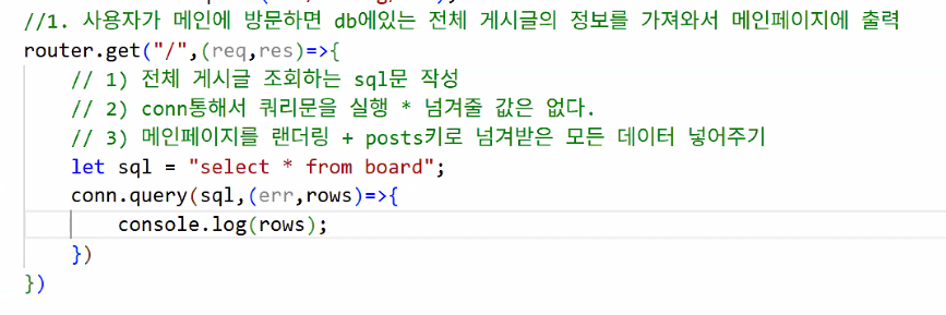 - 미션 1: 사용자가 메인에 방문하면 DB에 있는 전체 게시글의 정보를 가져와서 메인 페이지에 출력