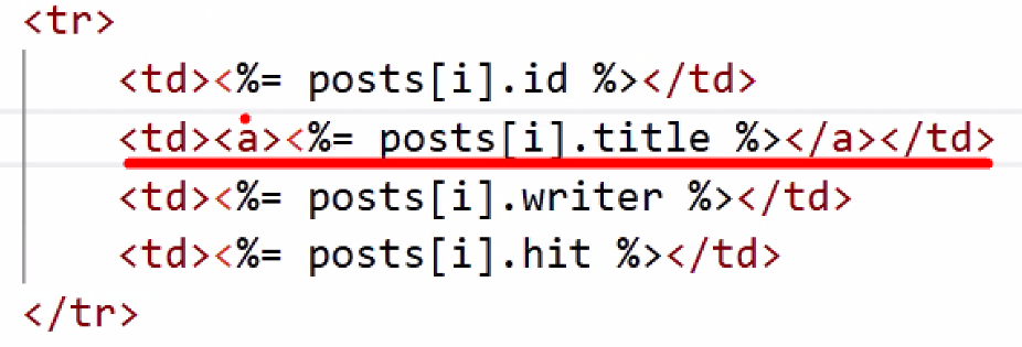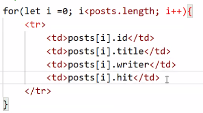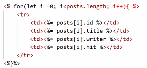 - 반복 생성: tr 태그, td 태그 4개, td 안의 내용을 posts에서 꺼내오기