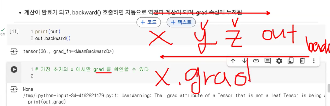 print(x.grad) # x는 연산을 위한 대상