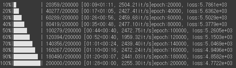 epochs = 200000 # 학습 횟수
