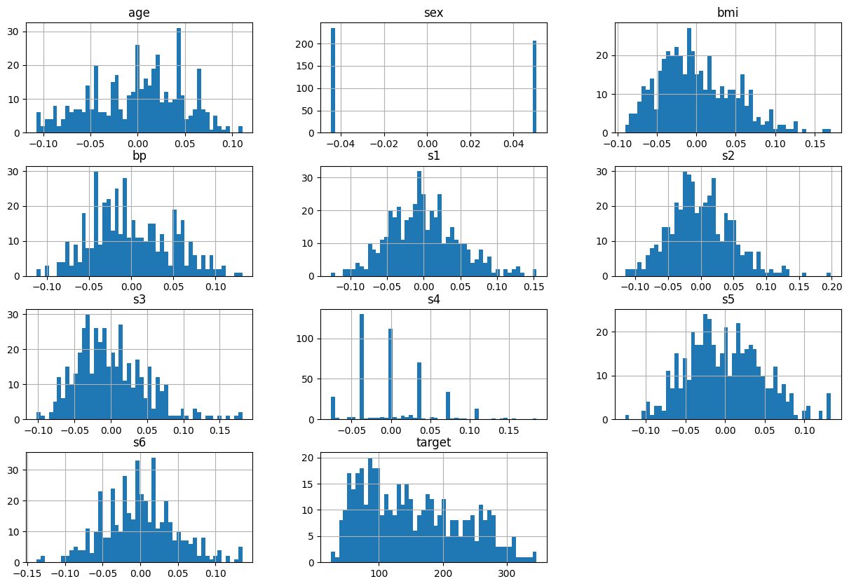 df_data.hist(bins=50, figsize=(15, 10))