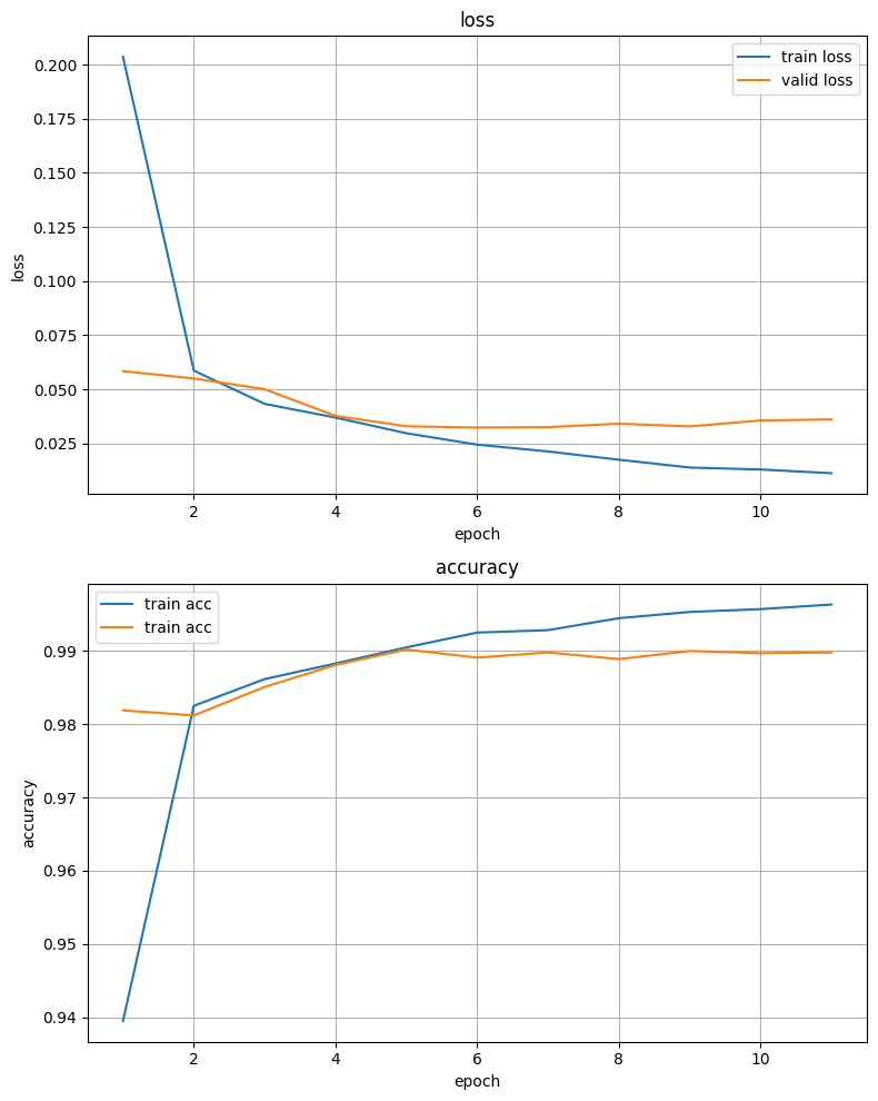 50%|█████ | 5/10 [01:02<01:01, 12.32s/it]epoch5 acc:0.9930 loss:0.0219 val_acc:0.9906 val_loss:0.0312 lowest_loss:0.0295