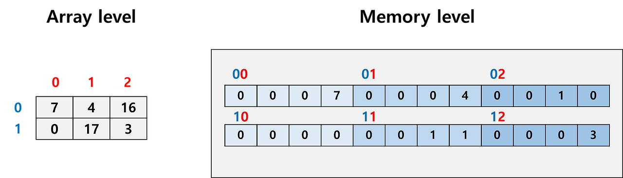 실제 우리가 다루는 array는 메모리에 저장될 때 주소 기반으로 저장됨