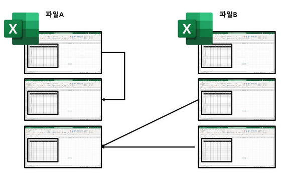 - 보통 여러 개의 시트가 있는 파일을 여럿 만들어 관리하고, 필요에 따라 각 파일과 시트를 참조