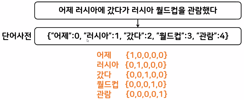 나눈다 == 토큰화한다, 하나의 벡터로 변환 == 수치화한다