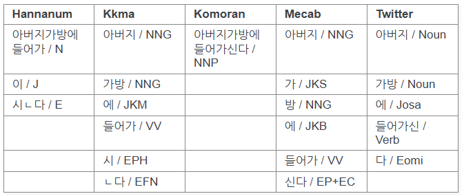 # 형태소 분석 도구 불러오기