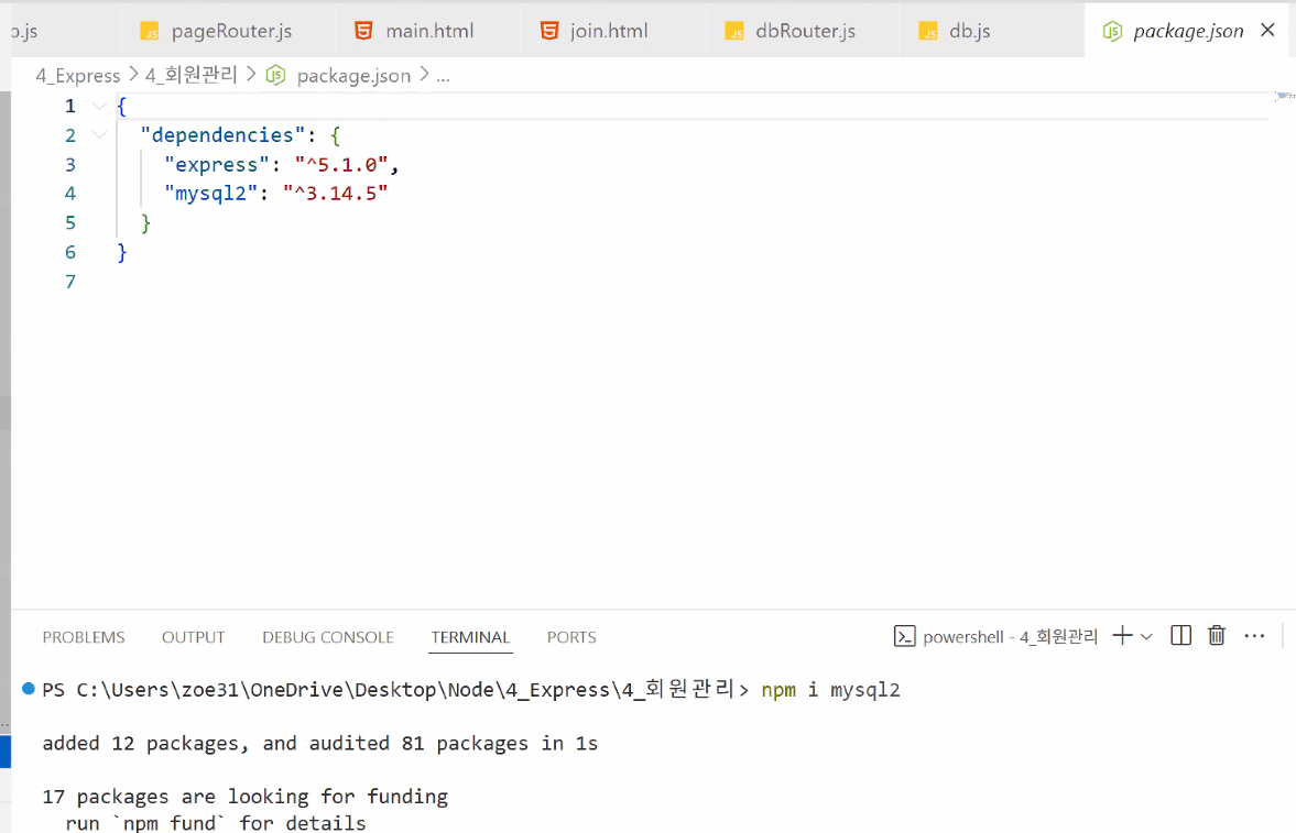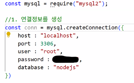 npm i mysql2 설치