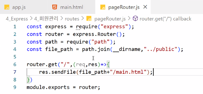 sendFile() 쓰면 경로는 안 바뀌었는데 화면은 바뀜