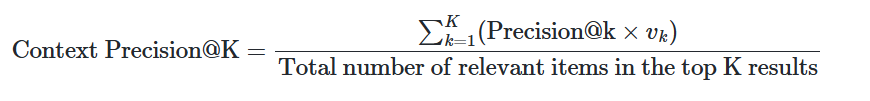 | Context Precision (문맥 정밀도) | 가져온 컨텍스트 중 관련 조각의 비율 | (가변) WithoutReference(LLM): user_input, response, retrieved_contexts / WithReference(LLM): reference, retrieved_contexts (+옵션 user_input) / WithReference(Non-LLM): reference_contexts, retrieved_contexts | 구현에 따라 LLM·Non-LLM 버전 존재. 공통적으로 retrieved_contexts 필수. |