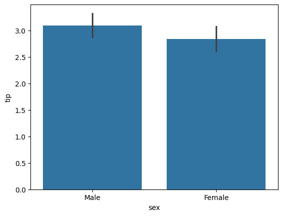 sns.barplot(data=tips_df, x='sex', y='tip')