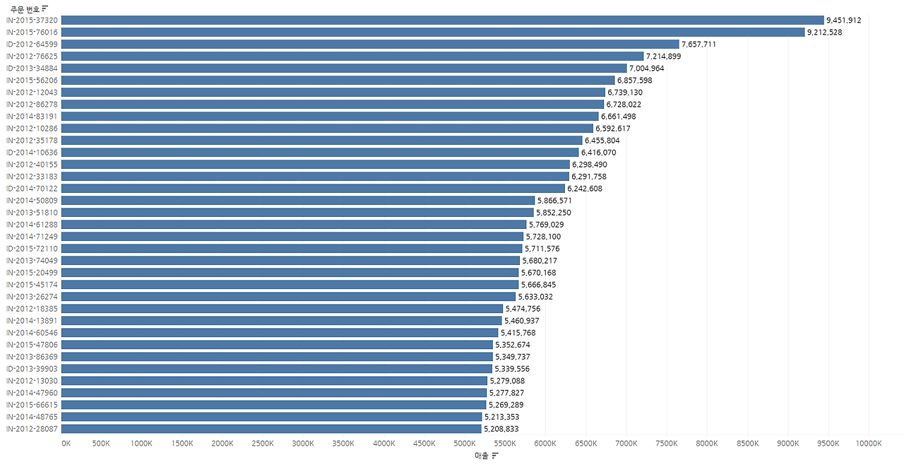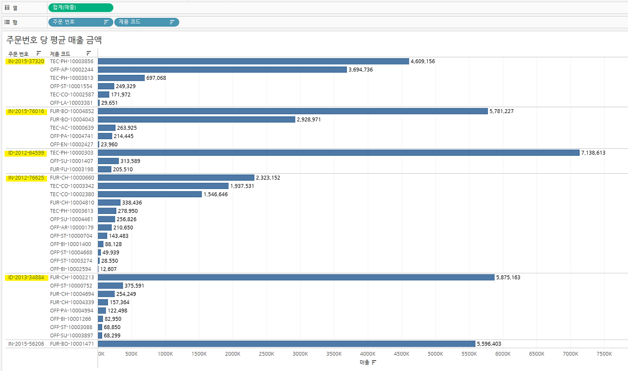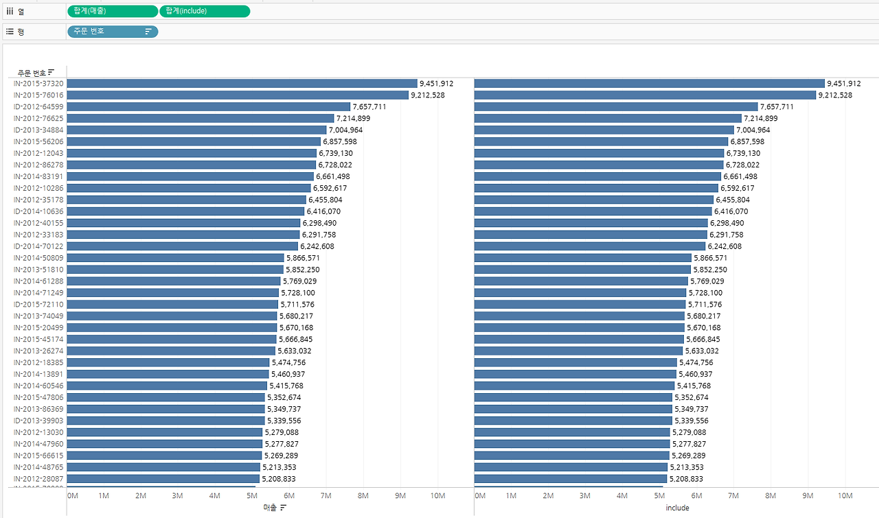 { INCLUDE [주문 번호]:SUM([매출])}