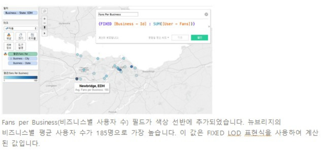 - LOD 표현식을 사용하면 세부 수준(예: 차원)을 비쥬얼라이제이션에 실제로 드롭하지 않고도 계산에서 사용되는 세부 수준을 결정할 수 있음