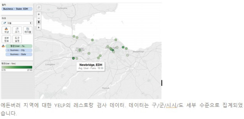 - Tableau에서는 원하는 차원(예: 구/군/시, 시/도)을 뷰에 드롭해 이러한 작업을 수행할 수 있음