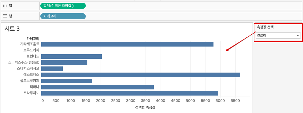 - 측정값 선택에 따라 막대차트의 데이터가 변경됨