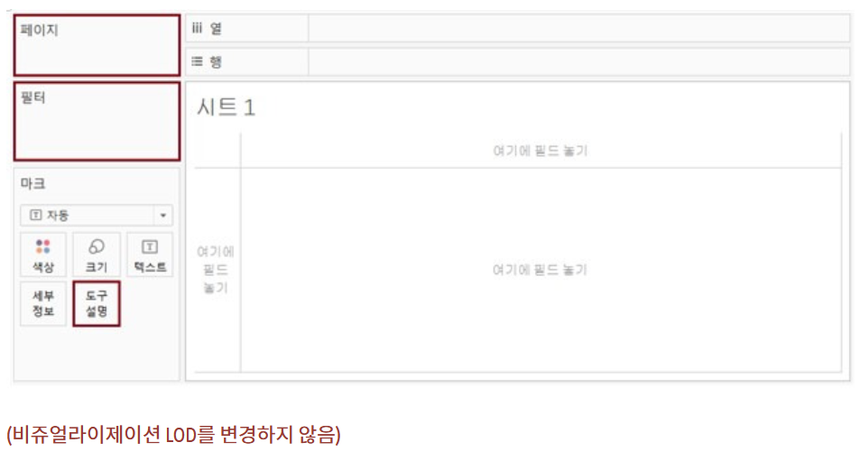- 차원을 페이지, 필터 및 도구 설명 선반에 배치하면 비쥬얼라이제이션 LOD에 추가되지 않음