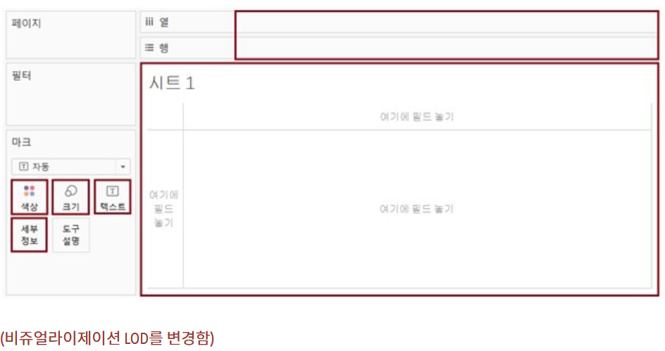 - 뷰에 추가한 차원에 따라 데이터가 '비쥬얼라이제이션 세부 수준', 즉 비쥬얼라이제이션 LOD로 집계됨